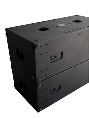 Durch das variable Tuning gibt es nun keine Notwendigkeit, mehr als einen Subwoofertyp im Lager zu haben. Selbst im hohen Tuning spielt der Subwoofer ohne Boost im DSP tiefer als gängige 18" Subwoofer. Die verwendeten Chassis aus italienischer Fertigung haben einen sehr großen linearen Hub, aber trotzdem ein leichtes Antriebssystem. Somit steht einer höheren Trennfrequenz nichts im Weg.